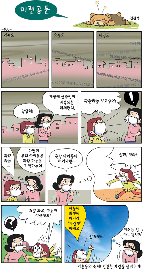 [미련곰툰 166] 어른들의 숙제! 건강한 자연을 물려주기!