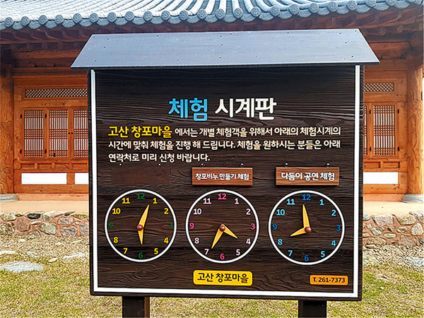 | 체험 시계판! 시간에 맞춰 다양한 체험 프로그램들이 운영되고 있음을 한눈에 알 수 있게 해놨다. |