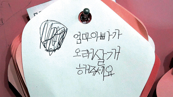또 한 사람은 심청각 안에서 만난 아이였다. 그곳에는 연꽃잎 모양 색지에 소원을 써서 붙여 놓은 코너가 있다. 사업번창하게 해주세요, 건강하게 해주세요, 취직하게 해주세요, 로또 일등 맞게 해주세요 등…. 수많은 사연 중에 반짝! 내 눈에 들어온 건 아이의 삐뚤삐뚤한 글씨였다. 그 글씨는 글씨 자체로 감동이었다. “엄마 아빠가 오래 살게 해주세요!” 온 마음을 다해 쓴 글은 그 어떤 사랑보다 아름답고 숭고했다. 왕관을 준다 해도 아이들은 부모와 바꾸지 않는다. 사람이 사람을 선택한다는 것, 그것이 아이가 어른보다 위대한 이유가 아닐까.
