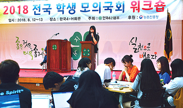 오는 10월 19일 민의의 전당인 국회에서 열리는 ‘2018 전국 학생 모의국회’를 앞두고 한국4-H회관에서 사전 워크숍이 진행됐다.