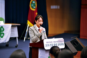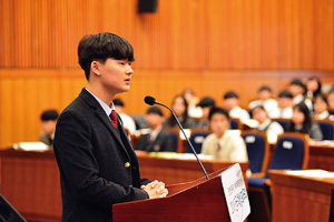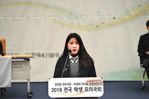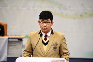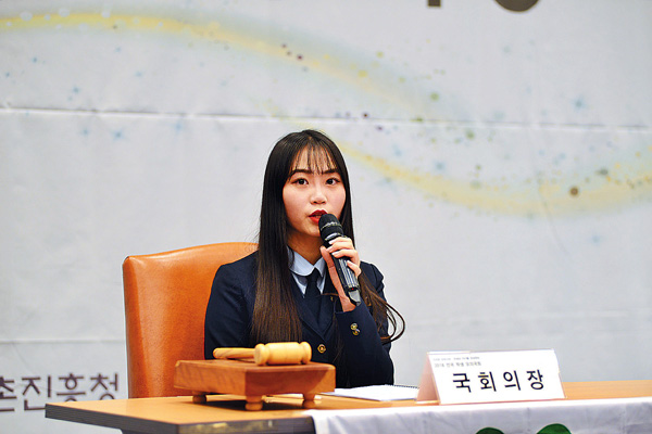 | 모의국회 대통령으로 시정연설을 하는 이주원 회원(경기 여주대신고) |