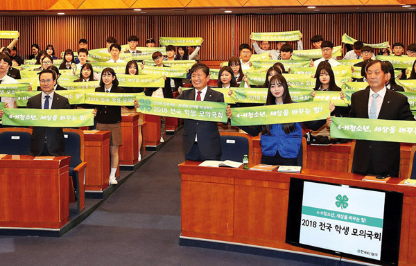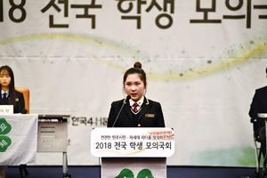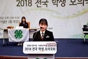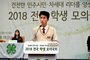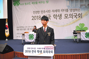 | 모의국회 의장으로 의사진행을 매끄럽게 한 전국학생4-H연합회 김성진 회장(경기 삼일상업고) |