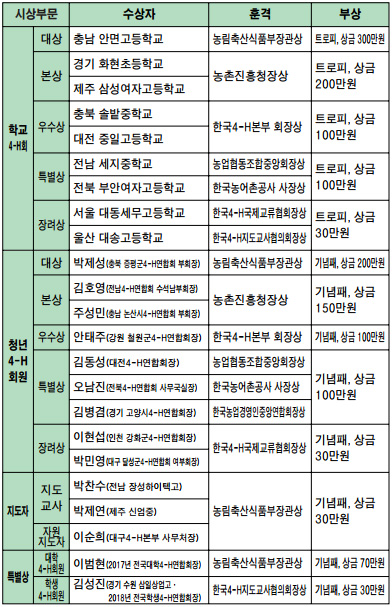 제20회 한국4-H대상 수상자 명단