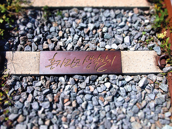 항동철길엔 글씨가 새겨져 있다. 〈혼자라고 생각 말기〉 나는 그 글씨 앞에 서서 멀리 바라보았다. 두 줄기 평행선이 따듯한 글씨를 품고 먼 길을 가고 있었다.
