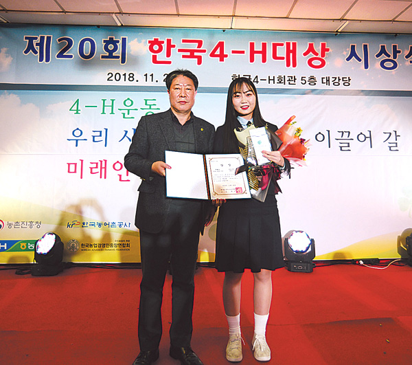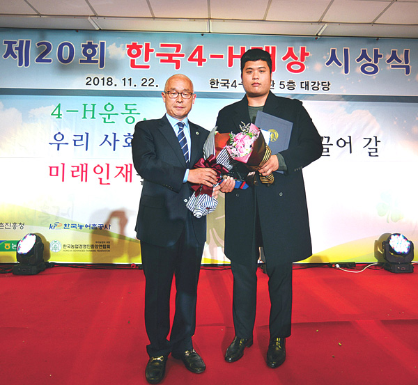 | 〈한국농업경영인중앙연합회장상〉 (왼쪽부터) 김지식 한국농업경영인중앙연합회장, 김병겸 경기 고양시4-H연합회장 |