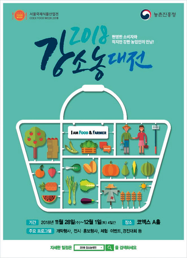 농촌진흥청(청장 라승용)은 지난달 28일부터 12월 1일까지 서울 코엑스 전시관 A홀에서 ‘강소농, 농업의 품격을 높이다’라는 주제로 ‘2018 강소농대전’을 개최했다.