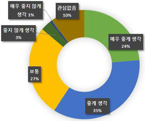 다른 학생들은 4-H회 활동에 대해 어떻게 생각하는지를 묻는 질문에서 ‘매우 좋게 생각(매우 부러워함)’이 23.7%, ‘좋게 생각(부러워함)’이 35.5%로 긍정적인 응답 비율이 59.2%로 나타났다. ‘좋지 않게 생각’은 3.4%와 ‘매우 좋지 않게 생각’은 0.7%로 부정적인 응답 비율은 3.8%로 나타났다. 〈그림7〉