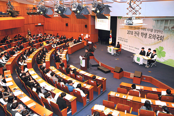 청소년의 눈으로 더 나은 해결책을 모색하기 위해 4-H청소년들이 대한민국의 역사와 발전상을 간직한 국회를 찾았다. 학생, 교사, 학부모 등 250여명이 참석한 가운데 지난 11월 19일 국회 헌정기념관에서 ‘2018 전국 학생 모의국회’를 개최했다.