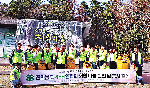전라남도4-H본부(회장 임재상)는 지난달 28일부터 30일까지 2박 3일간 제주특별자치도 일원에서 전남4-H연합회(회장 강민석) 주관으로 실시한 ‘2018 전라남도4-H연합회 핵심회원 현장교육’을 지원했다.〈사진〉