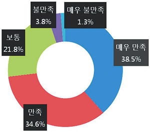 대학4-H회 참여와 관련된 회원들의 만족도를 묻는 질문에 대해 ‘매우 만족’에 응답한 비율이 38.5%, ‘만족하는 편’에 응답한 비율이 34.6%로 73.1%의 응답자가 4-H회 활동에 만족한다고 응답하였다. 불만족하는 비율은 ‘불만족하는 편’이 3.8%, ‘매우 불만족’이 1.3%로 소수에 그치는 것으로 나타났다.