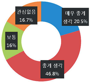 나의 4-H활동에 대해 가족이나 지인들은 어떻게 생각하는지를 묻는 질문에서 ‘매우 좋게 생각’이 16명(20.5%), ‘좋게 생각’이 35명(46.8%)으로 긍정적인 응답 비율이 65.4%로 나타났다. ‘좋지 않게 생각’과 ‘매우 좋지 않게 생각’에는 응답자가 없었으며, ‘관심없음’은 13명(16.7%)으로 나타났다.