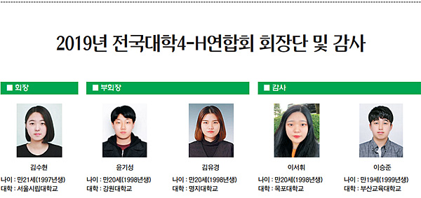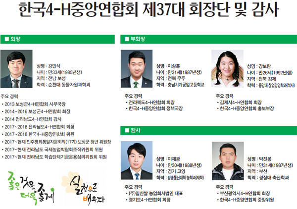 한국4-H의 미래, 대한민국 농업의 희망! 2019년을 이끌 핵심4-H회원들에게 큰 격려와 성원 바랍니다
