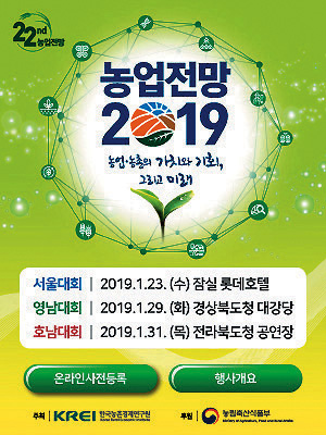 농업전망 2019 행사는 23일 서울대회(잠실 롯데호텔3층)를 시작으로 △29일 영남대회(경북도청) △31일 호남대회(전북도청)가 각각 예정돼 있다.
