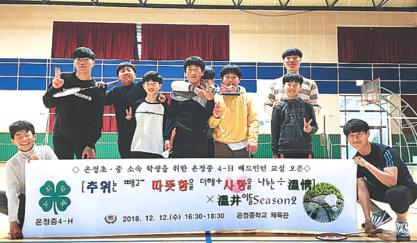 이번 행사는 온정중4-H회원 학생들이 가진 배드민턴 능력을 모교 후배인 온정초 동생들에게 재능기부를 하기 위해 진행됐다.