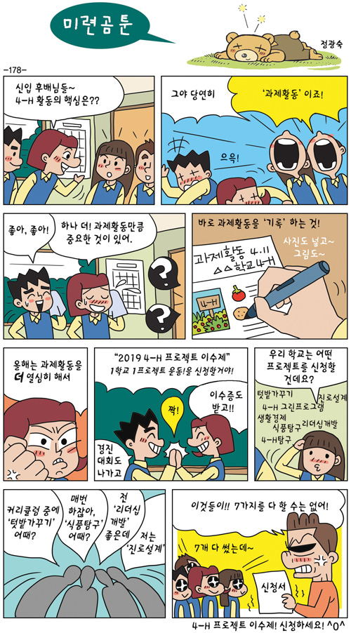 [미련곰툰 178] 4-H 프로젝트 이수제! 신청하세요! ^0^