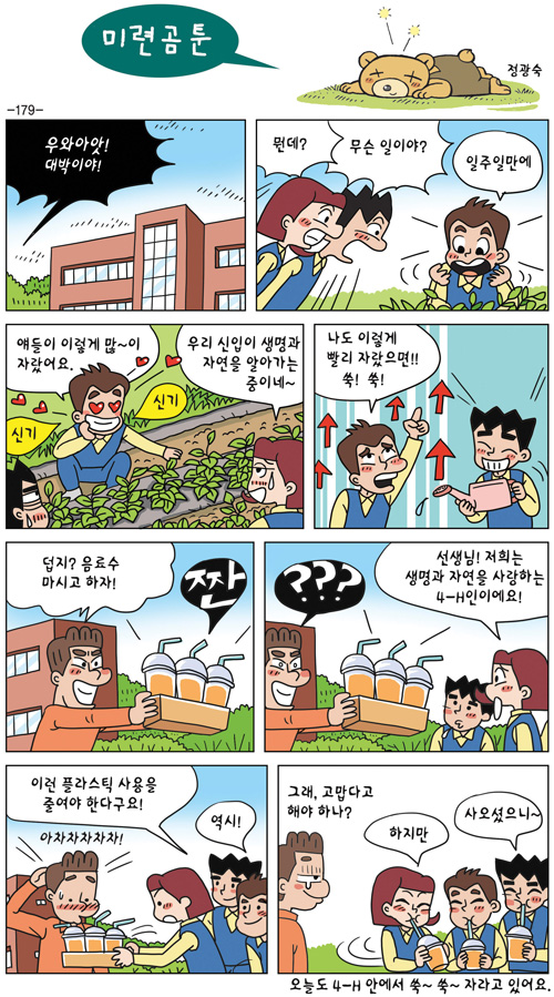 [미련곰툰 179] 오늘도 4-H 안에서 쑥~ 쑥~ 자라고 있어요.