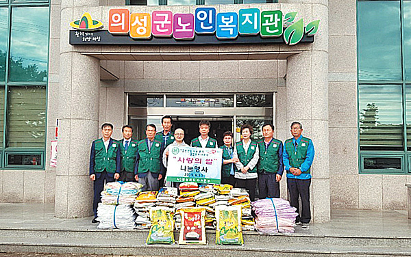 경상북도4-H본부(회장 황병도)는 지난 10일 4-H본부 지도자, 의성군노인복지관 관장 휴담 스님 등 10여명이 참석한 가운데 ‘사랑의 쌀 나눔행사’를 실시했다.〈사진〉