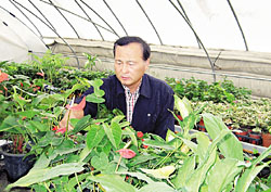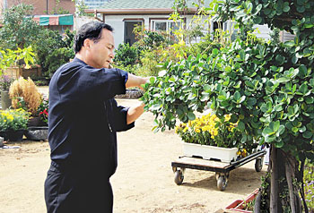 | <하우스에서 꽃을 돌보고 있는 최종헌 지도자.> |