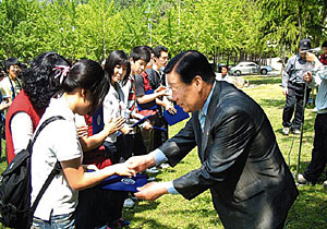 | <대구광역시 4-H청소년의 달 행사에서 우수회원들에게 표창장을 수여하고 있는 김희도 회장.> |