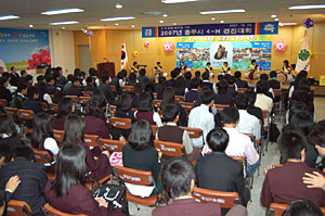 충주농고의 사물놀이공연, 4-H운동 60년 활동사진, 동영상 상영 등 식전 행사로부터 이어진 개회식에서는 4-H서약 제창을 시작으로 이문성(충주상고 3년)외 우수회원 14명에 대한 장학증서 수여와 정장희(충주농고), 김병길(칠금중) 지도교사에 대한 충주시교육장 표창장 수여가 있었다.