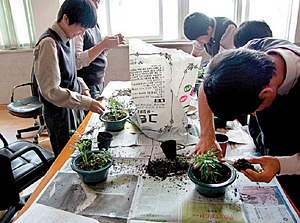| <춘천기계공고4-H회는 분경재배 등을 통해 딱딱한 학교의 분위기를 산뜻하게 바꿨다.> |