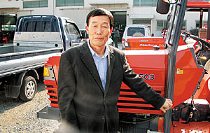 | <경북 경주시4-H후원회 김문달 회장이 자신이 운영하는 대동공업(주) 경주대리점 사업장에서 트랙터에 대해 설명하고 있다.> |