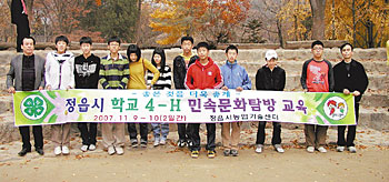 | <흙 사랑 체험을 통해 산외중학교 4-H회원들은 공동체의삭은 물론 땀의 소중함을 깨닫고 있다.> |