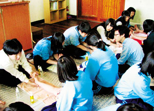 올해 고대중4-H회원들이 중점적으로 실천하고 있는 것이 발 맛사지 교육과 이를 통한 노인 돕기 봉사활동이다. 자원봉사센터의 지원으로 12회 교육을 받은 후 현장봉사를 하게 되는 이 프로그램은 오는 7월7일 수료식을 가진 후 본격적인 활동을 하게 된다. 회원 전원이 교육을 받고 있는 중이다.