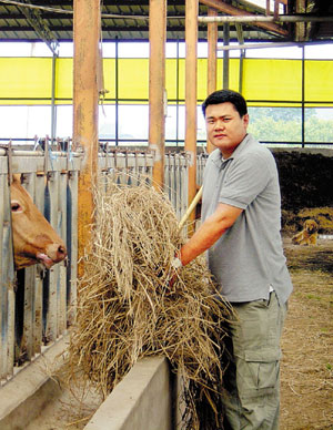 송 회장은 늦은 모내기를 마치고 축사에서 한우관리에 여념이 없었다. 송 회장은 도4-H연합회장이라는 중책을 맡고서도 한번도 영농활동을 게을리해 본적이 없다.