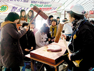 농촌현장체험학습에서 딸리인절미 만들기 체험. |