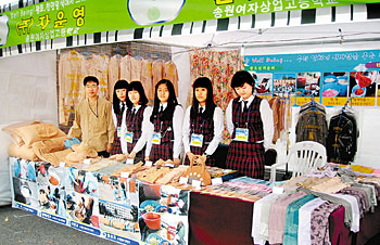 | <송원여상4-H회원들이 직접 천연염색한 것들을 광주광역시 벤처창업대전에서 선보였다.> |