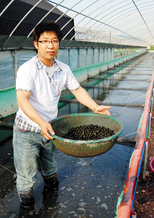 찌는 듯한 여름더위에 아랑곳 하지 않고 우렁이와 함께 굵은 땀방울을 흘리고 있는 정봉우 부산광역시4-H연합회 사무국장(24·사상구 모라동)을 만났다. 서글서글한 얼굴과 구수한 사투리, 앳된 모습이었지만 아버지 정명철씨(48)와 함께 우렁이 양식을 해온지도 벌써 3년이 됐다.