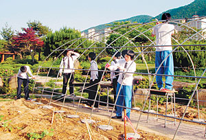 하지만 회원들과 이성규 지도교사의 노력으로 총 990㎡의 잔디밭을 개간해 텃밭, 넝쿨터널, 동산, 초가집을 마련해 학교의 삭막했던 분위기가 학생들이 좀더 자연에 가까워질 수 있는 분위기로 바뀌게 됐다.