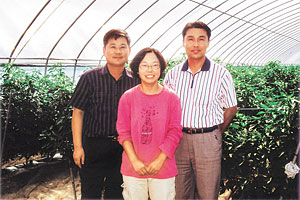 | <왼쪽부터 홍성군농업기술센터 임민택 계장, 맹 회원, 천한태 지도사가 함께 했다.> |