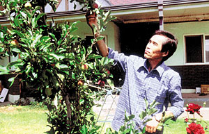 | <평생을 4-H와 함께해 온 이관수 회장이 정원수를 돌보고 있다.> |