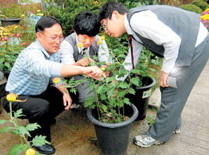 회원들은 자신의 화분에 물을 주고 잡초를 뽑으며 ‘한 송이 국화꽃을 피우기 위한’ 모든 과정을 지켜보며 생명의 신비를 체험했다. 2학년 김영철 회원은 “3월부터 내가 키운 국화가 이렇게 잘 자라 꽃을 피운 것을 보니 참 신기하고 기분이 좋다”고 말한다.