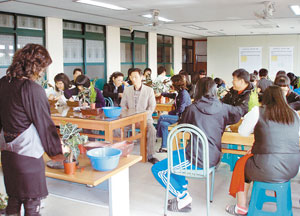| 봉사활동 실천과 연중 꽃피는 학교 만들기에 여념이 없는 서산고 4-H회원들이 서산시 농업기술센터에서 주관한 과제 교육에 참석하고 있다. |