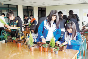 분경제작에 열심인 서산고 4-H회원들. 지난해 가을 이 작품으로 전시회를 열었다.