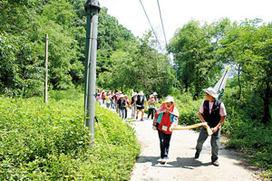 | 작년 상주시4-H연합회 주관으로 실시한 ‘장애우와 함께하는 등산’에 참가한 상주공고4-H회원들. |