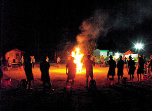 | 상주공고4-H회는 매년 4-H야영교육에 참가해 호연지기를 기르고 있다. 사진은 봉화식에 참여하는 모습. |