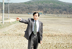 | <봄이 무르익는 들판에서 김대연 회장이 과거 활발하게 4-H활동을 하던 시절의 얘기들을 들려주고 있다.> |