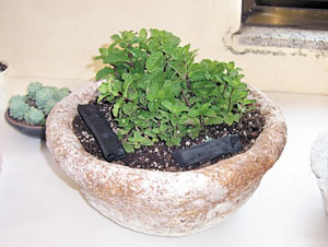 <회원들이 파쇄기에서 나오는 폐지를 활용해 직접 만든 허브화분. 구림공고4-H회만의 특색있는 과제활동이다.> |