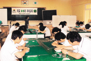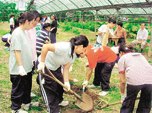 도농업기술원(원장 강용철)에서는 지난 1991년부터 국화, 한란 등 꽃묘를 이 학교에 조직배양을 의뢰해 관내 각 학교에 보급해오고 있다. 올해로 6년째 4-H회를 맡고 있는 손명진 지도교사는 “요즘 4-H회원들은 흙문화가 아니라 모니터문화”라고 지적하고 “자연친화적인 4-H활동을 통해 회원들이 자연과 더불어 흙과 친숙해지도록 노력하고 있다”고 말한다. 또 “풍부한 정서를 갖도록 교과목 외에 다양한 과제활동과 4-H회를 통한 현장체험으로 회원들이 성장하는 모습을 보면서 보람을 느낀다”고 했다.