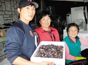 | <최요한 부회장이 어머니(가운데), 할머니와 함께 느타리버섯을 포장해 출하하고 있다.> |