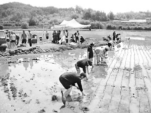 경북 문경시4-H연합회(회장 황두환)와 문경시4-H본부(회장 권정수)는 지난달 13일 4-H단체과제포(산양면 우본리·7272㎡)에서 모내기 행사를 가졌다.〈사진〉