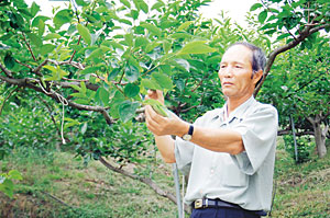 | <하왕봉 회장은 3만3000㎡의 감 농장과 6600㎡의 배 농장을 운영하며 후배회원들의 본이 되기 위해 최선의 노력을 하고 있다.> |