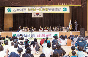 전북지역 학생4-H회원 550명은 지난달 23일 과제경진대회를 갖고 그동안 갈고 닦아온 실력을 뽐냈다. 전주 용흥중학교 강당에서 열린 이번 대회는 시도에서 가진 첫 번째 과제경진대회로 백일장, 장기자랑, 현장경진을 통해 기량을 겨루며 우의를 다졌다. |