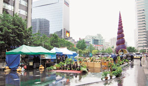 | 서울 청계광장에 전시된 서울시 학생4-H회원들이 가꾼 우리들꽃. 비가 내리는 가운데서도 많은 시민이 찾았다. |