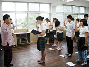 면천중학교4-H회 발마사지 봉사단은 당진군자원봉사센터의 지원 아래 지난 4월부터 12회 24시간에 걸쳐 43명의 회원들이 발마사지 교육(국선도협회 당진지원장 강현충)에 참가해 이날 수료식을 갖게 되었다. 특히 20명의 회원들은 수료증을 받았다.