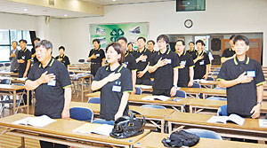 | <지역4-H활성화 시범지역 핵심지도자들이 교육에 앞서 4-H서약을 하고 있다.> |